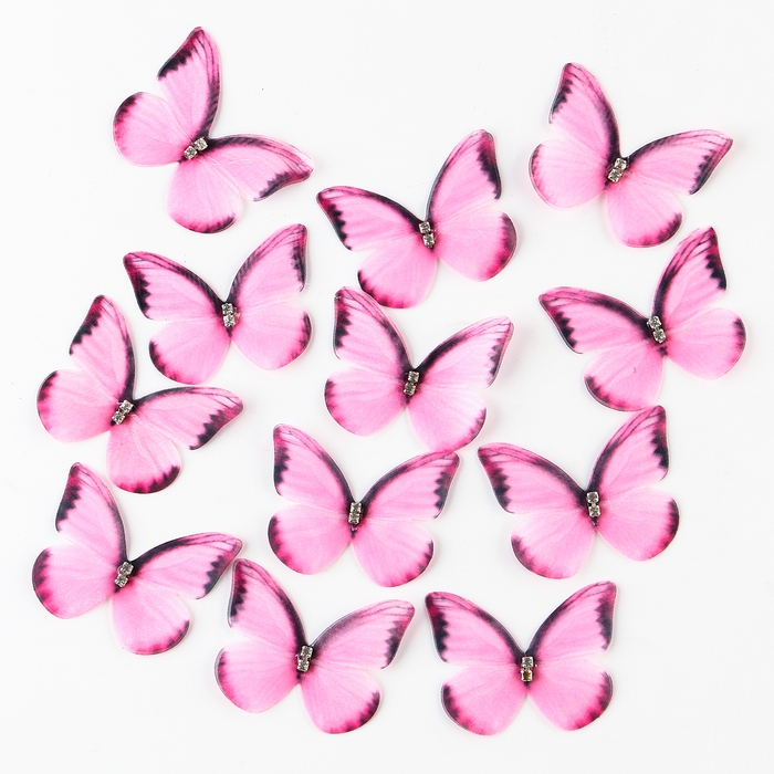 Декор для творчества «Бабочка», двухслойный, набор 12 шт., размер 1 шт. — 5 × 4 см, цвет розовый