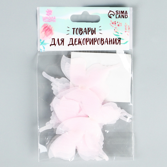 Декор для творчества «Бабочка», трёхслойный, набор 12 шт., размер 1 шт. — 5 × 4,5 см, цвет розовый