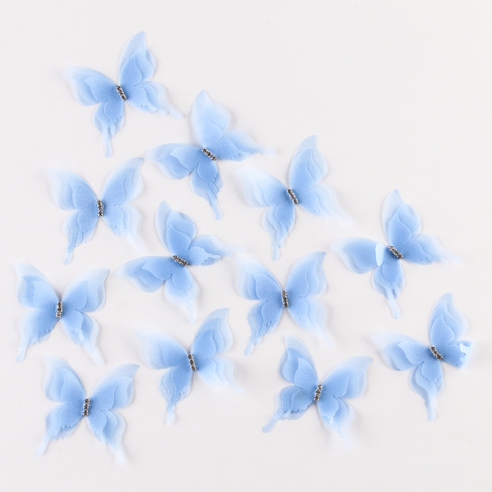 Декор для творчества «Бабочка», трёхслойный, набор 12 шт., размер 1 шт. — 5 × 4,5 см, цвет голубой