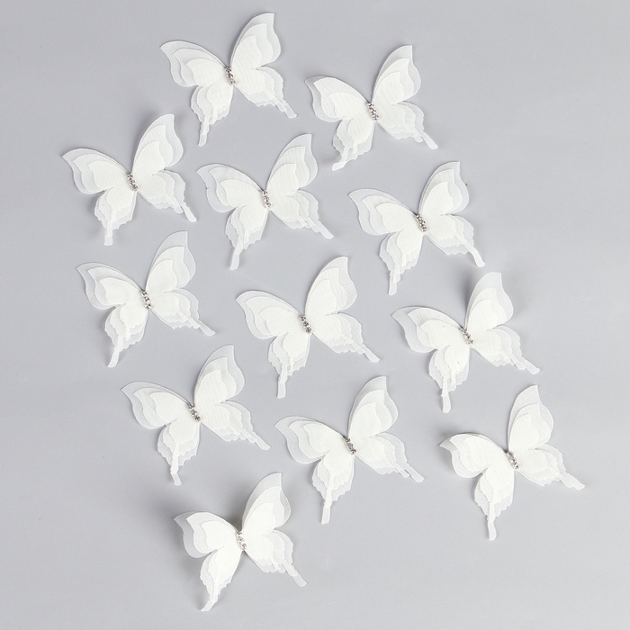 Декор для творчества «Бабочка», трёхслойный, набор 12 шт., размер 1 шт. — 5 × 4,5 см, цвет молочный