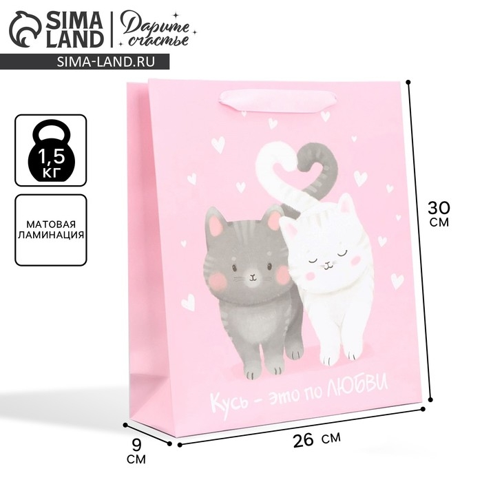 Пакет подарочный ламинированный вертикальный, упаковка, «Любви и тепла», M 26 х 30 х 9 см