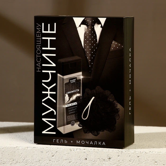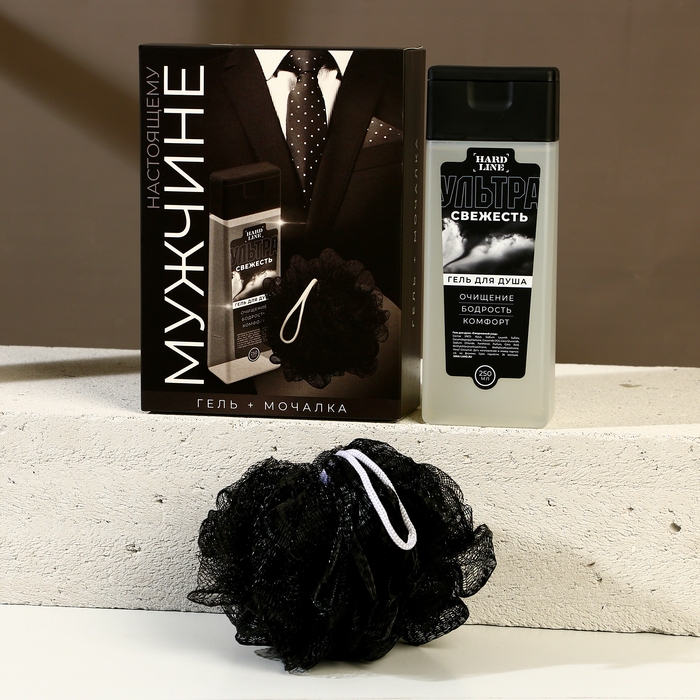 Подарочный набор косметики «Настоящему мужчине», гель для душа 250 мл и мочалка для тела, HARD LINE