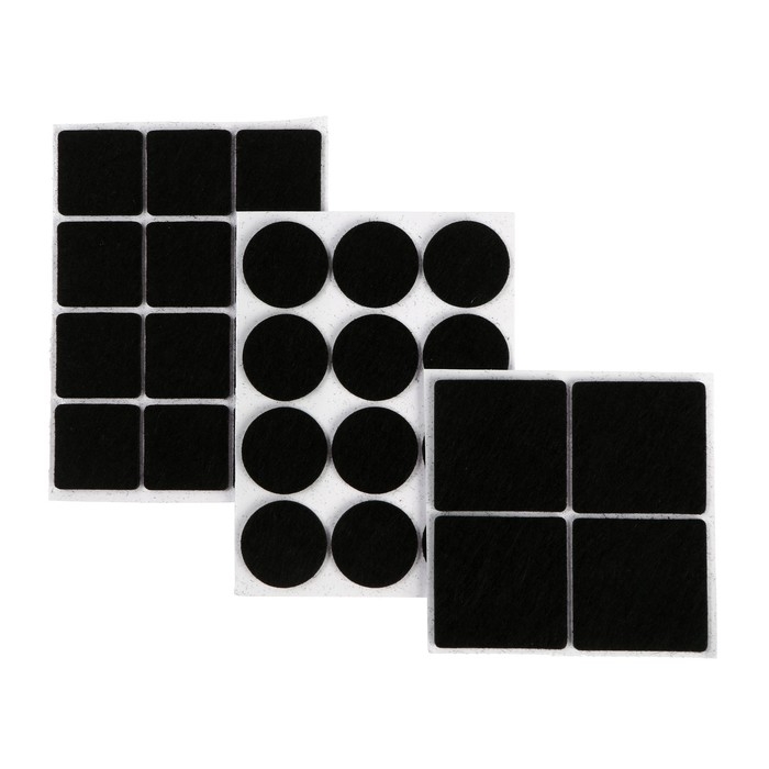 Набор накладок мебельных, войлочных, 28 шт., 2,5х2,5; d=2,5; 3,8х3,8, цвет черный