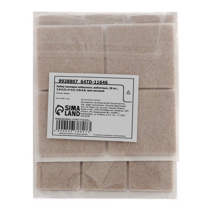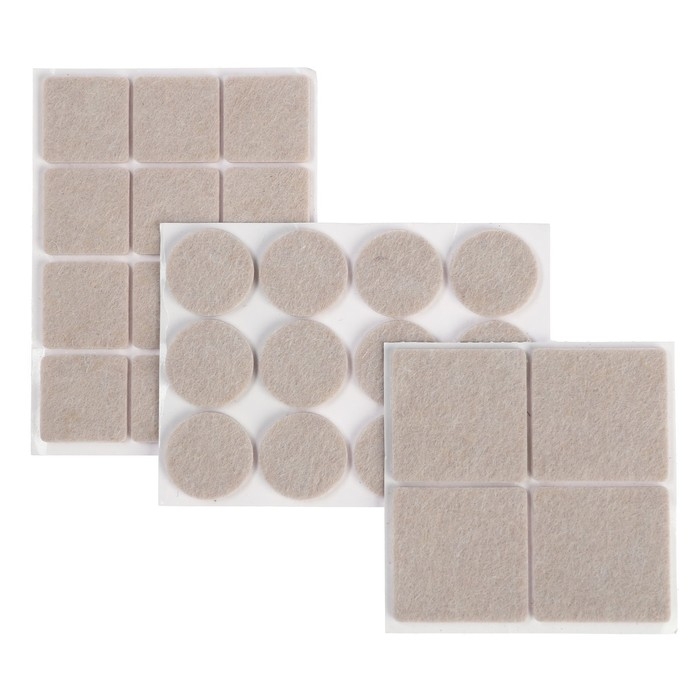 Набор накладок мебельных, войлочных, 28 шт., 2,5х2,5; d=2,5; 3,8х3,8, цвет рисовый