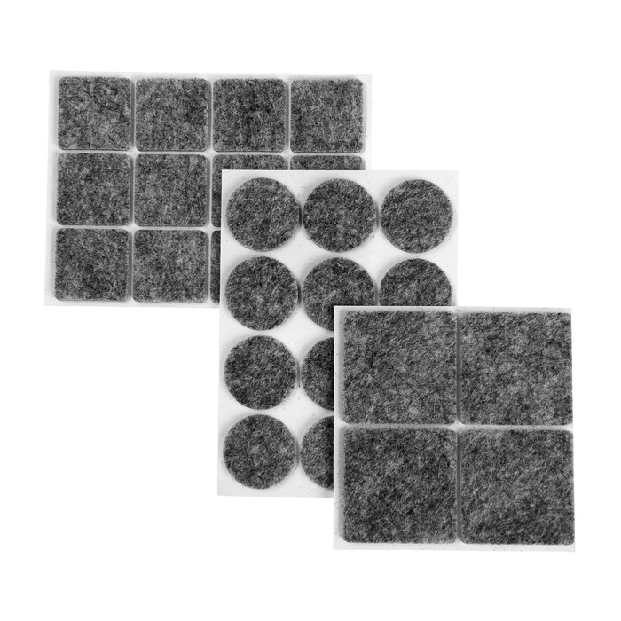 Набор накладок мебельных, войлочных, 28 шт., 2,5х2,5; d=2,5; 3,8х3,8, цвет серый