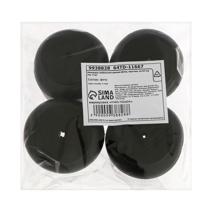 Накладка мебельная резина фетр, круглая, d=37-42 мм, 4 шт