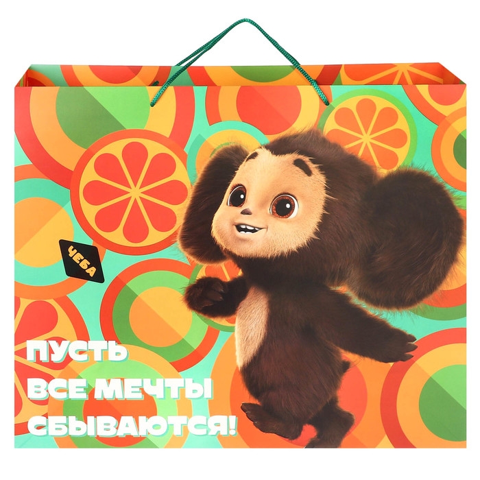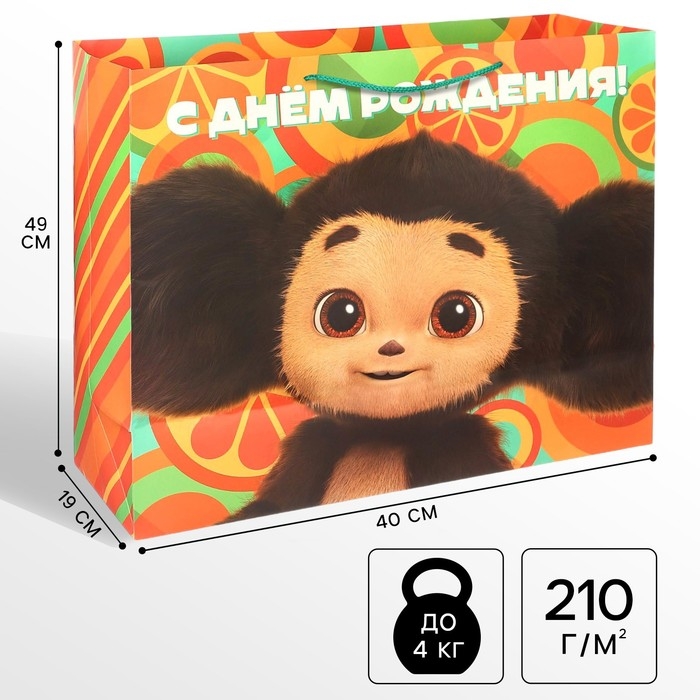 Пакет подарочный, "С Днем Рождения!", 49х40х19 см, упаковка, Чебурашка