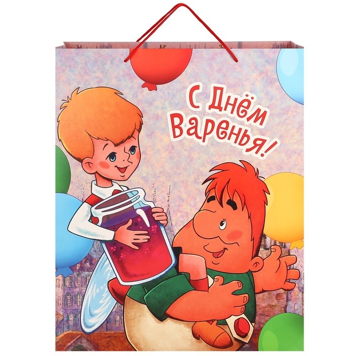Пакет подарочный "С Днём Варенья!" 40х49х19 см, упаковка, Малыш и Карлсон