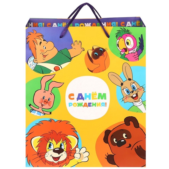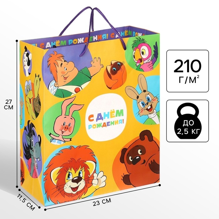 Пакет подарочный "С Днем рождения!" 23х27х11.5 см, упаковка, Союзмультфильм