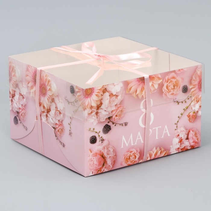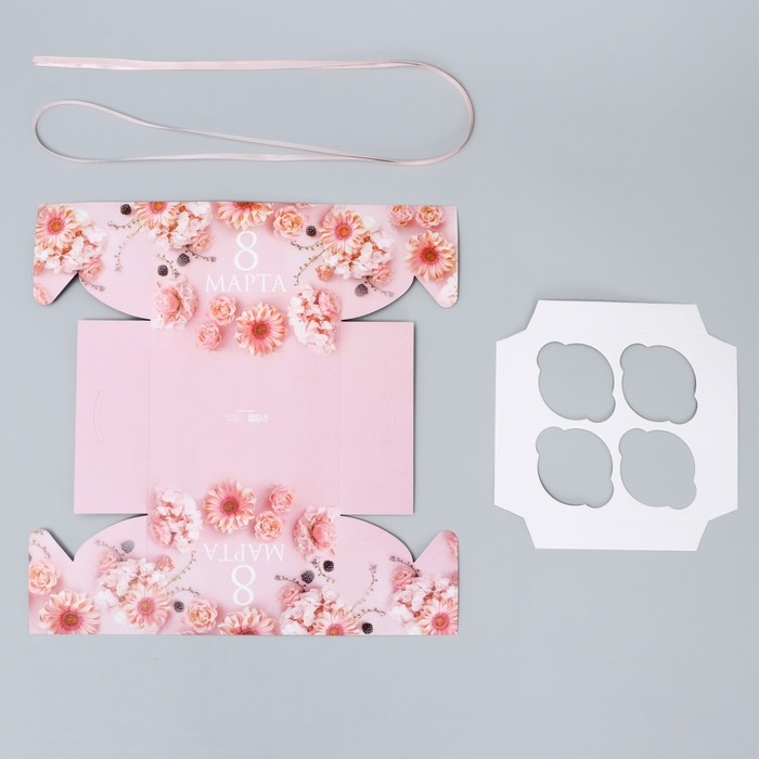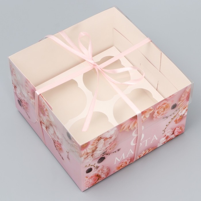 Коробка для капкейка, кондитерская упаковка, 4 ячейки «Любимой», 8 марта, 16 х 16 х 10 см