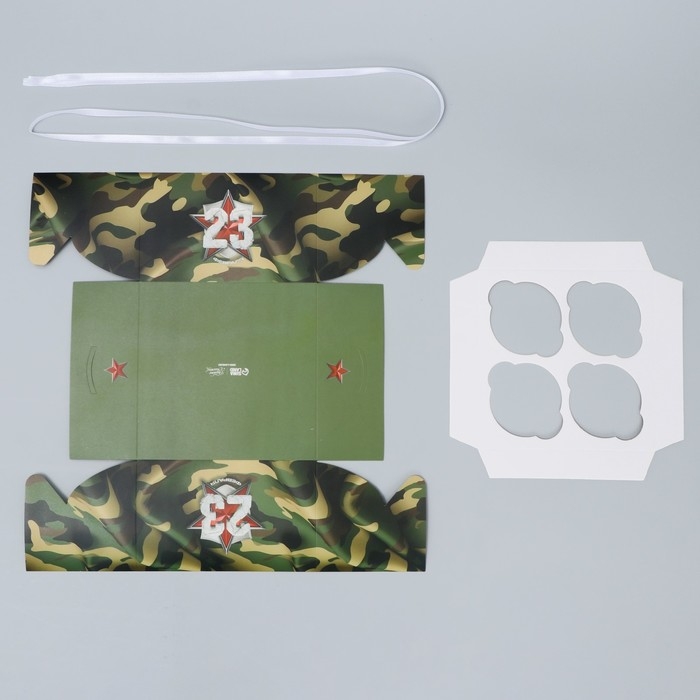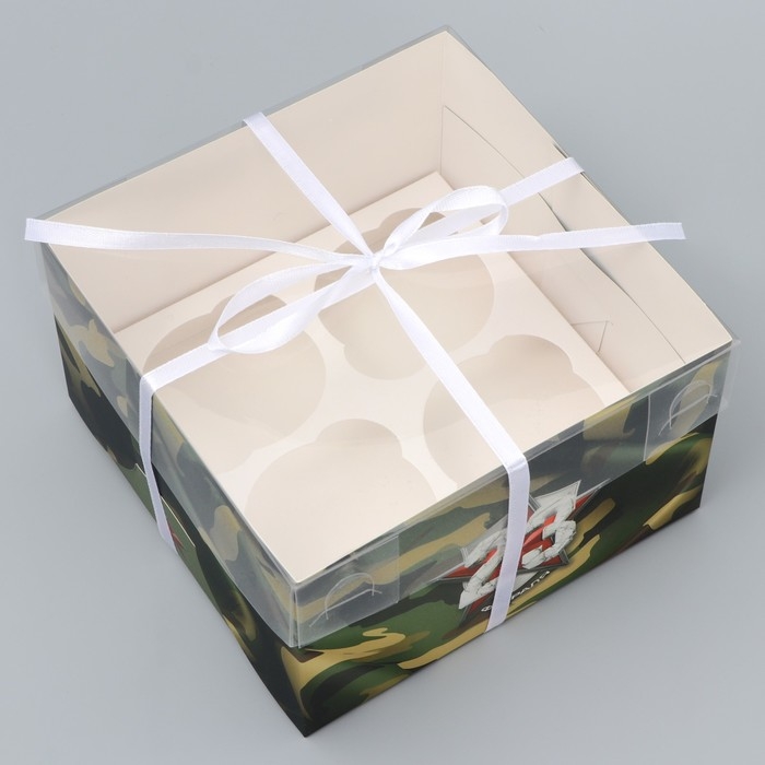 Коробка для капкейка, кондитерская упаковка, 4 ячейки, «Для моего мужчины», 23 февраля, 16 х 16 х 10 см
