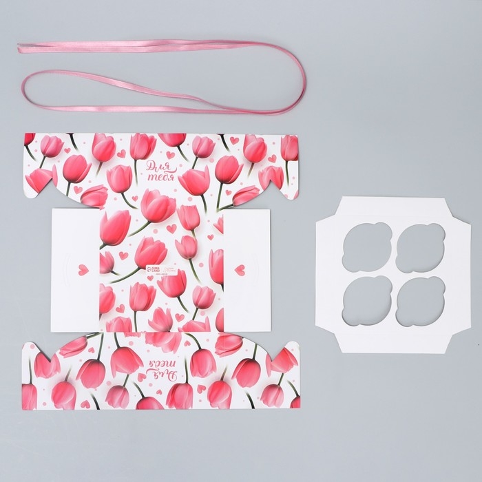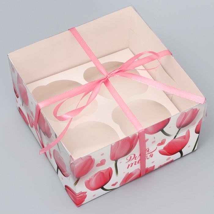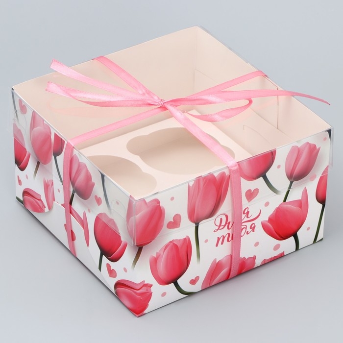 Коробка для капкейка, кондитерская упаковка, 4 ячейки «Только для тебя», 16 х 16 х 10 см