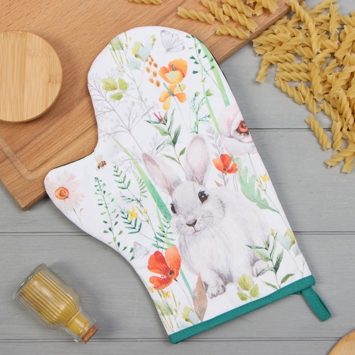 Варежка-прихватка Этель "Маки" 20х28см,саржа, 100% х/л, ватин 250г/м2