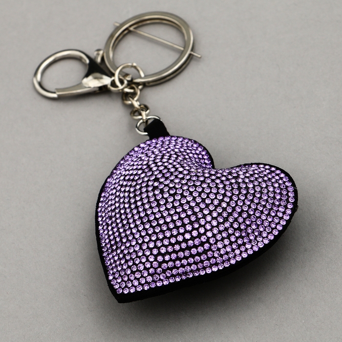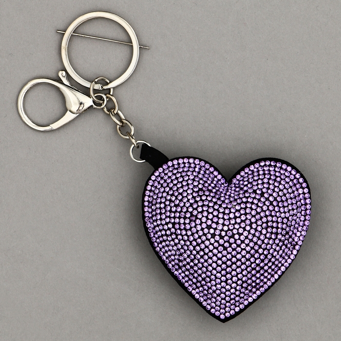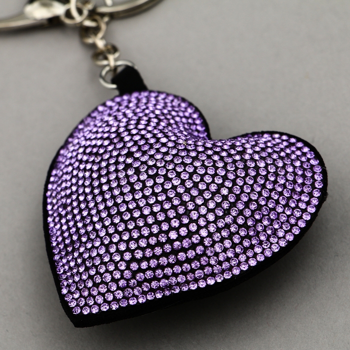 Мягкая игрушка «Сердце» со стразами, на брелоке, 7 см, цвет сиреневый