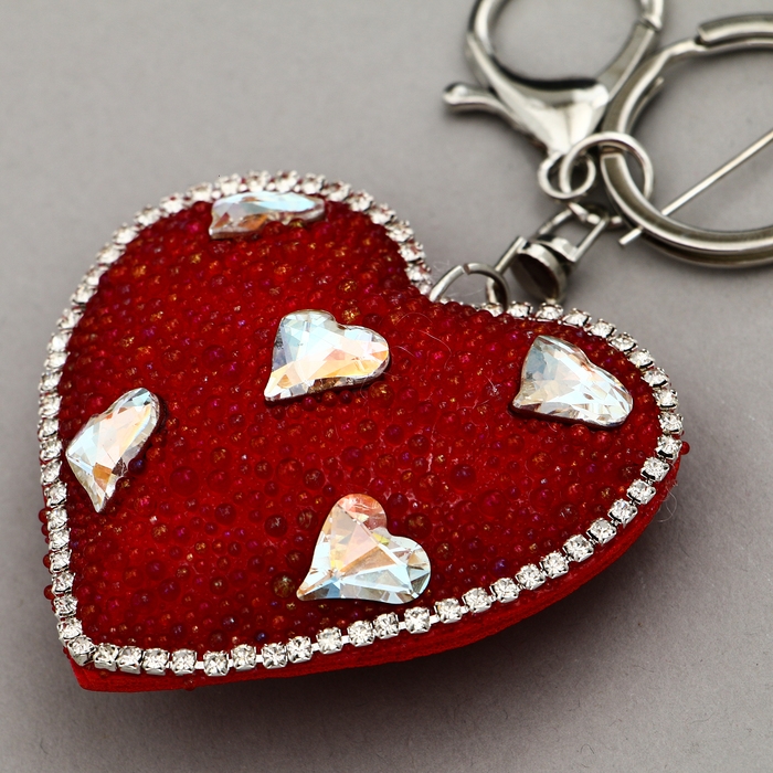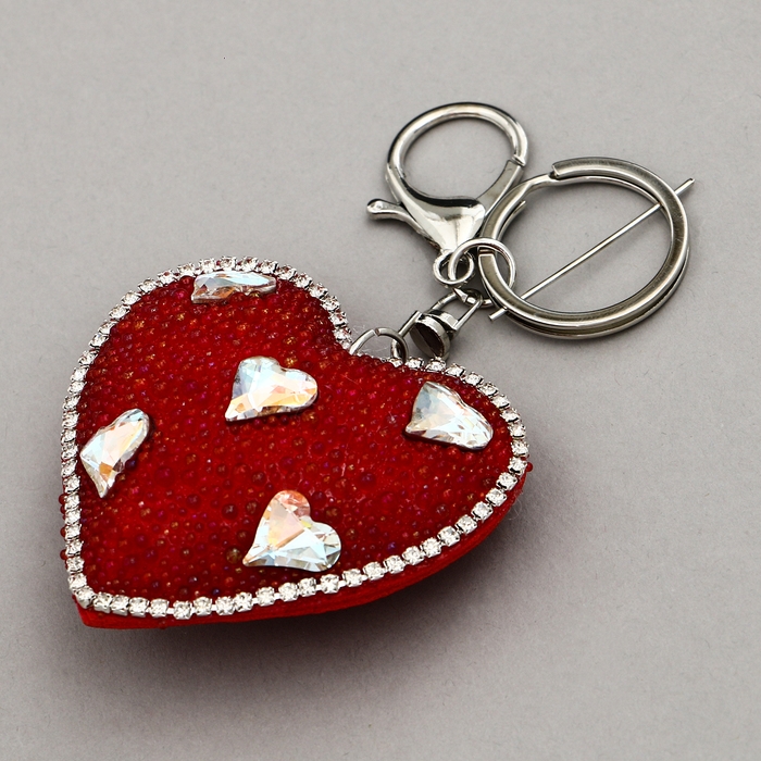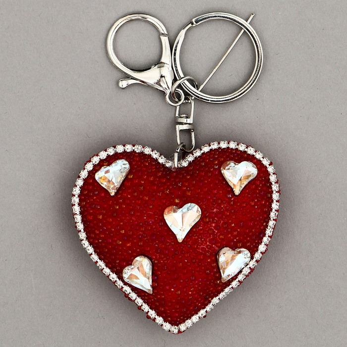 Мягкая игрушка «Объемное сердце» со стразами, на брелоке, 7 см, цвет красный