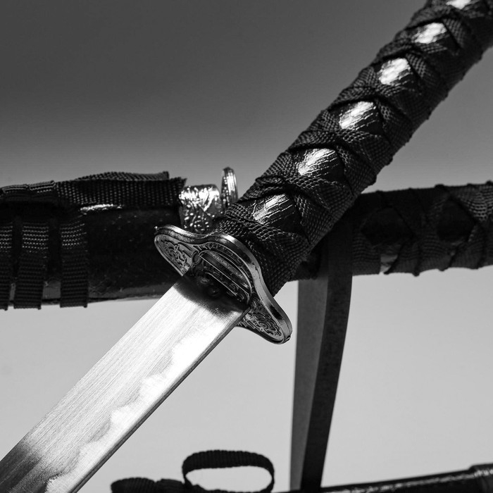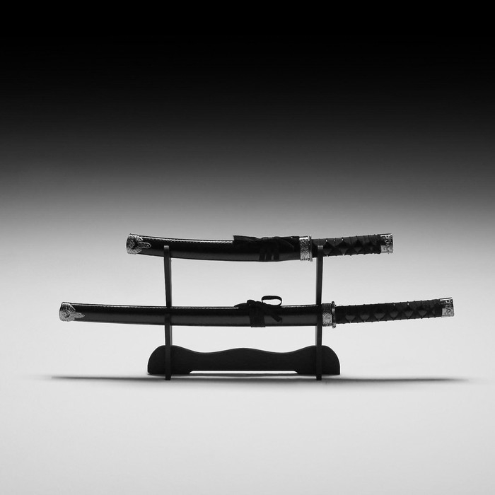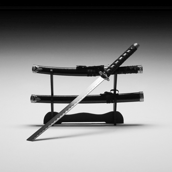 Сув. изделие катаны 2в1 на подставке, ножны кожзам, змея черная 47/70см