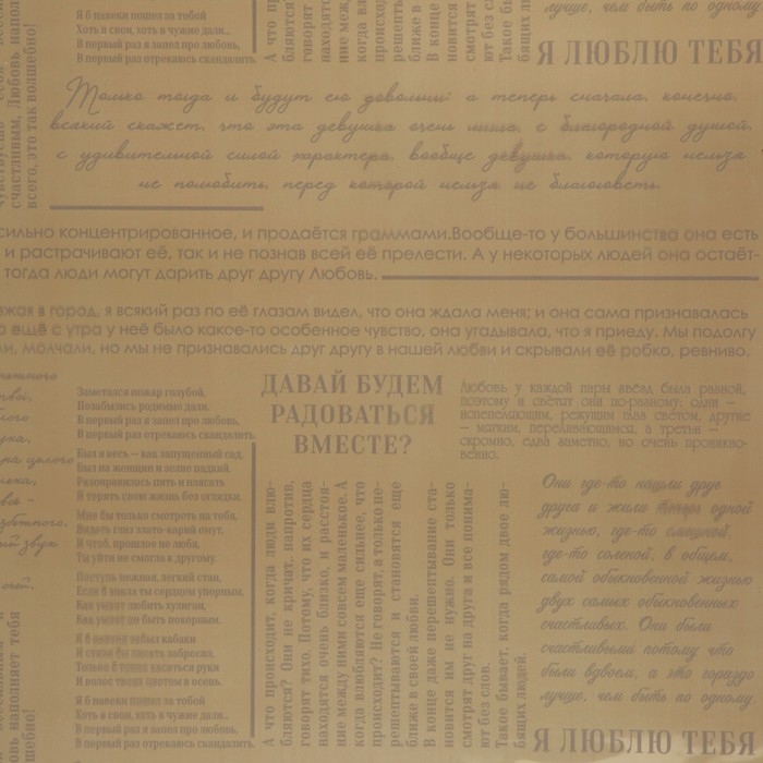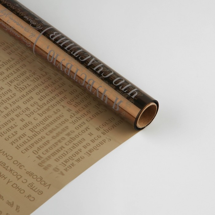 Плёнка для цветов упаковочная глянцевая прозрачная «Газета», кофейная, 0.6 x 10 м