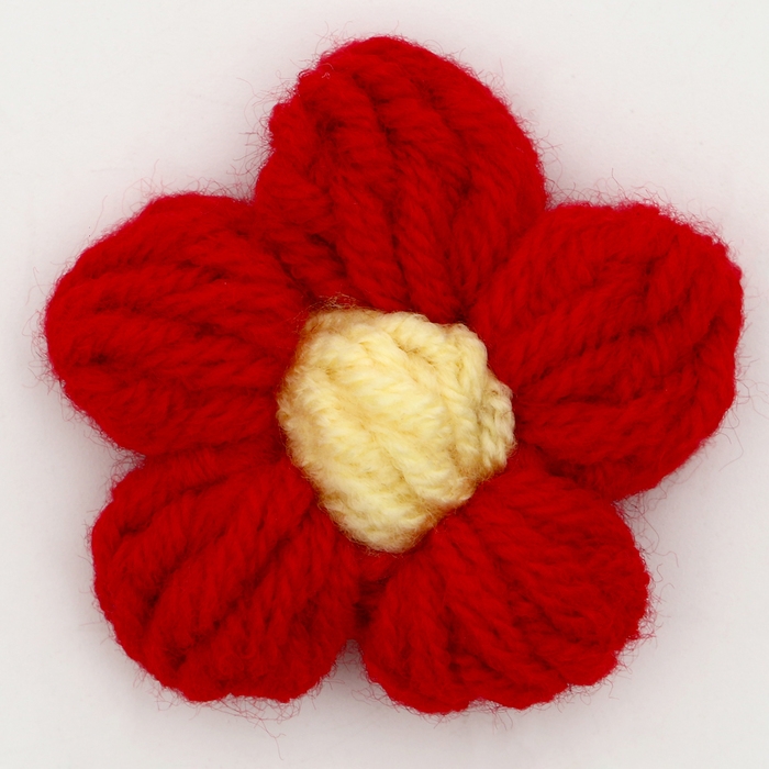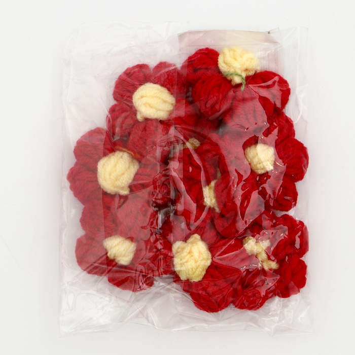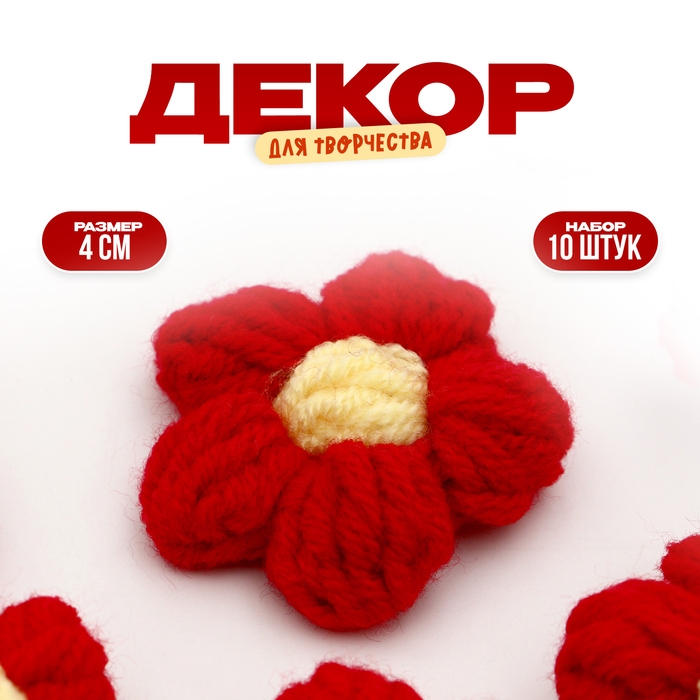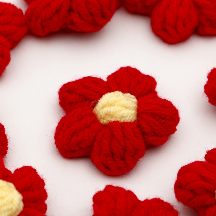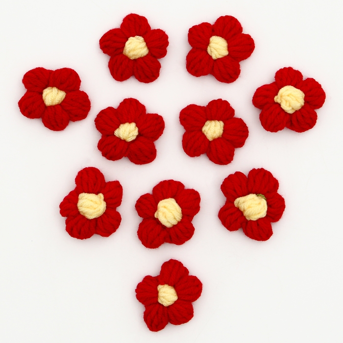 Цветок вязаный, набор 10 шт., размер 1 шт., 4 × 1,5 см, цвет красный