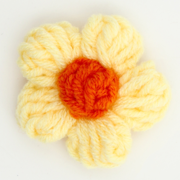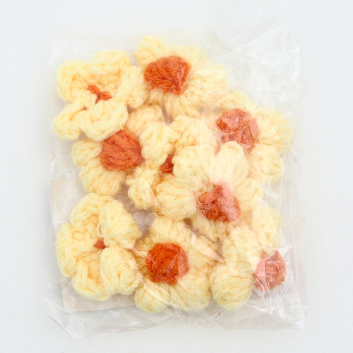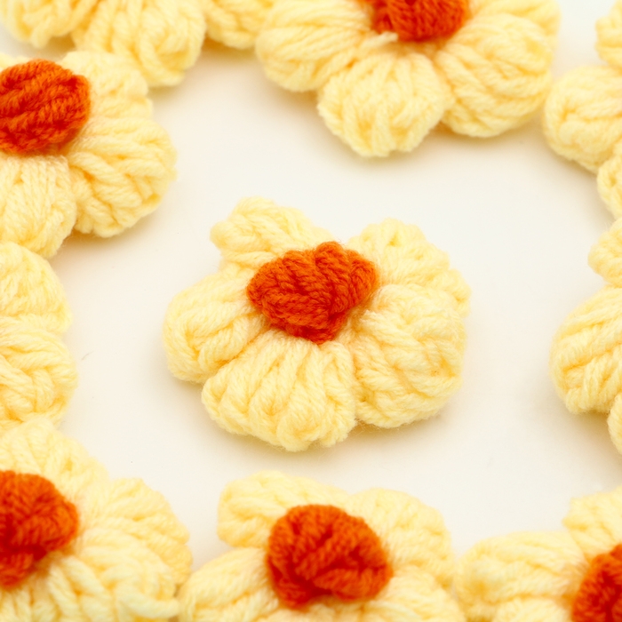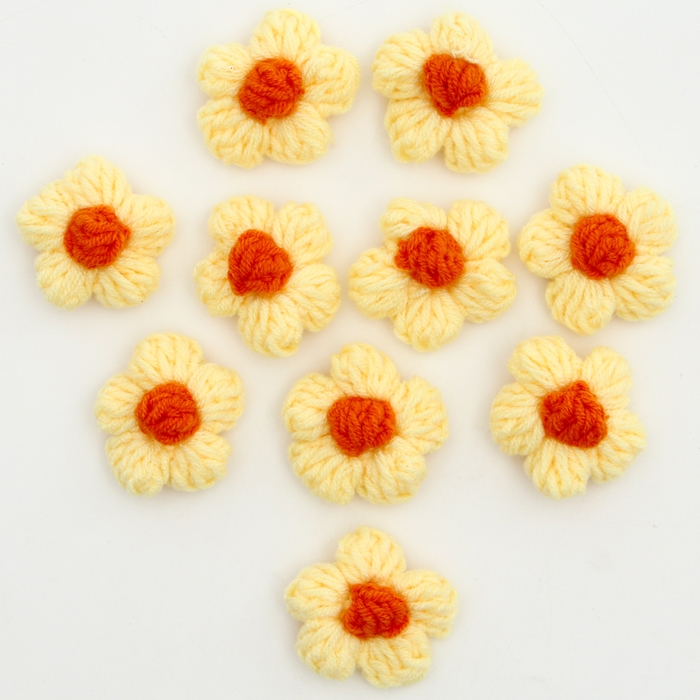 Цветок вязаный, набор 10 шт., размер 1 шт., 4 × 1,5 см, цвет жёлтый