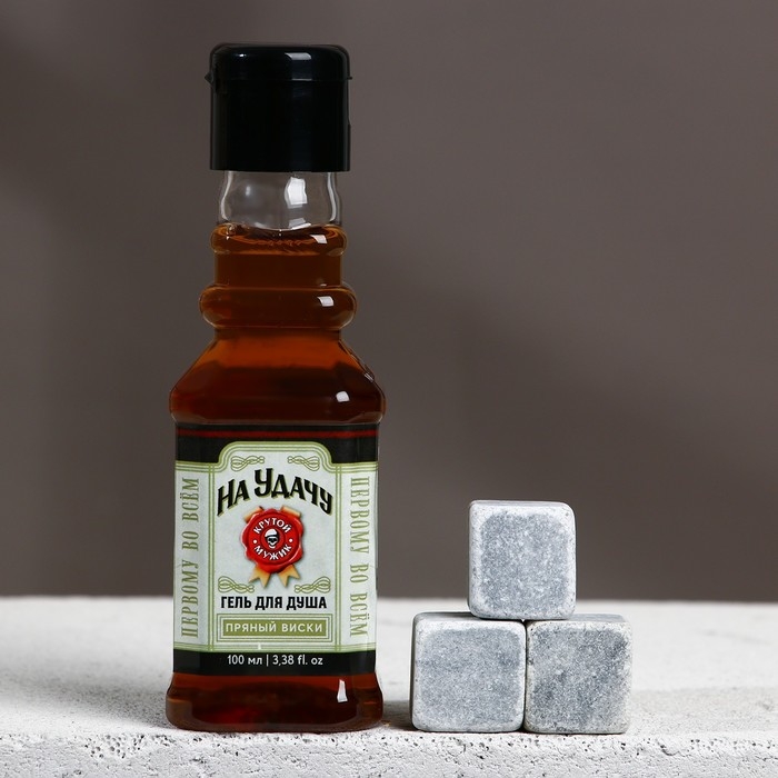 Подарочный набор косметики «На удачу!», гель для душа во флаконе виски 100 мл и камни для виски 3 шт, Новый Год