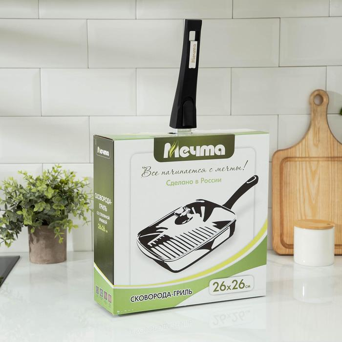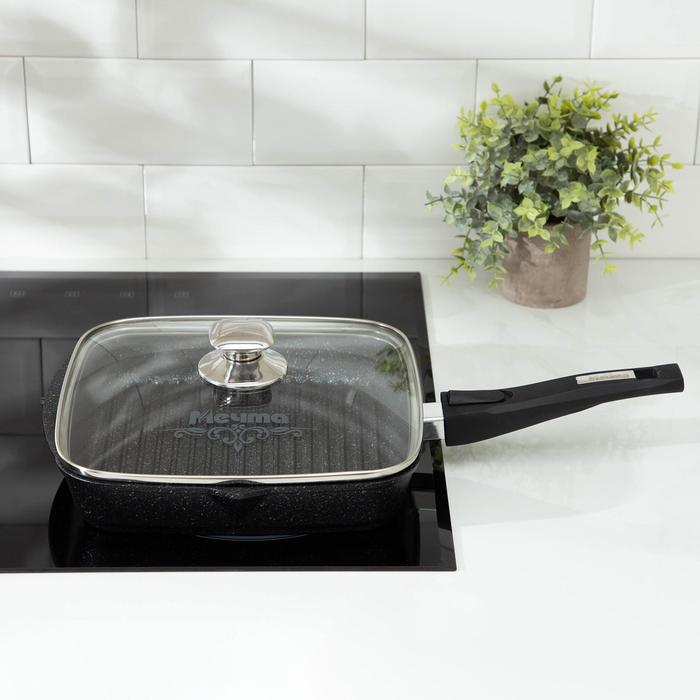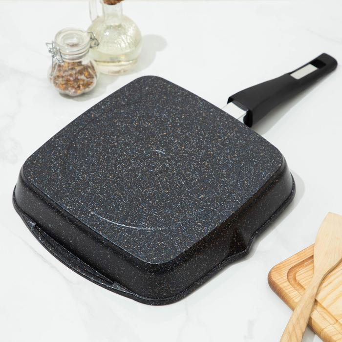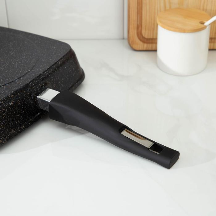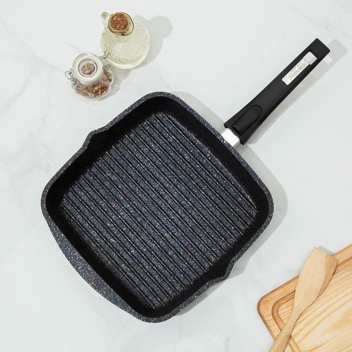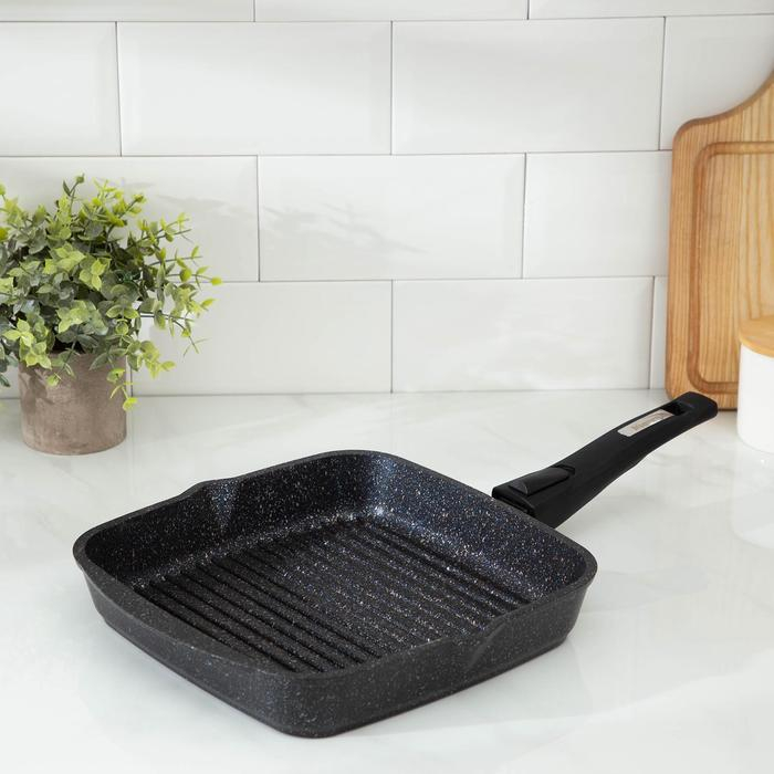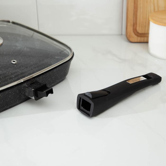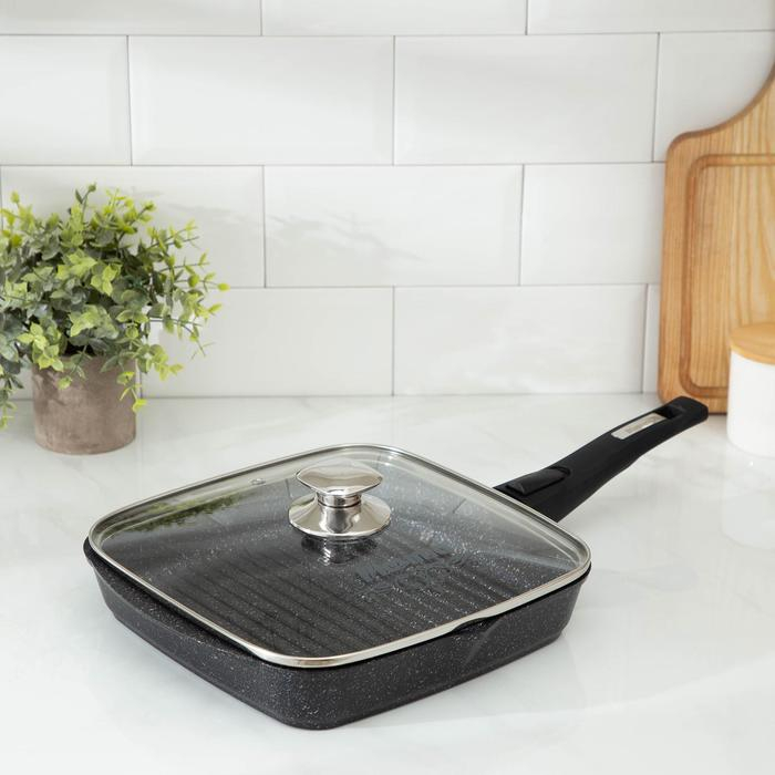 Сковорода-гриль «Гранит», 26×26, съёмная ручка, стеклянная крышка, антипригарное покрытие, цвет чёрный