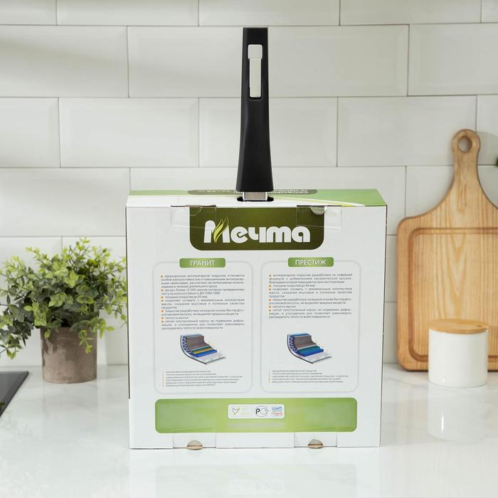 - Высокопрочное антипригарное мраморное покрытие на водной основе, усиленное сверхтвёрдыми частицами минералов.