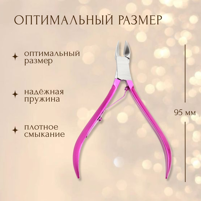 Кусачки маникюрные для кутикулы, 9,5 см, длина лезвия - 9 мм цвет серебристый/розовый