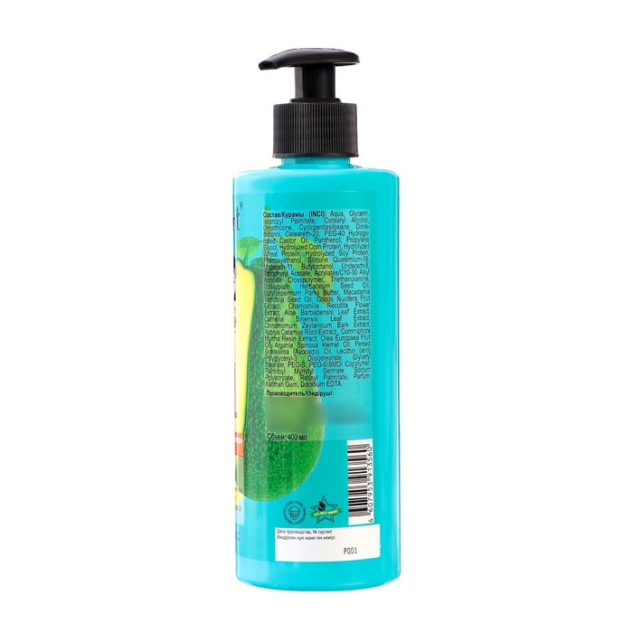 Состав: Aqua, Glycerin, Isopropyl Palmitate, Cеtearyl Alcohol, Dimethicone, Cyclopentasiloxane, Dimethiconol, Ceteareth-20, PEG-40 Hydrogenated Castor Oil, Panthenol, Propylene Glycol, Hydrolyzed Corn Protein, Hydrolyzed Wheat Protein, Hydrolyzed Soy Protein, Phenoxyethanol, Silicone Quaternium-16, Undeceth-11, Butyloctanol, Undeceth-5, Tocopheryl Acetate, Acrylates/C10-30 Alkyl Acrylate Crosspolymer, Triethanolamine, Gossypium Herbaceum Seed Oil, Butyrospermum Parkii Butter, Macadamia Ternifolia Seed Oil, Cocos Nucifera Fruit Extract, Chamomilla Recutita Flower Extract, Aloe Barbadensis Leaf Extract , Camellia Sinensis Leaf Extract, Cinnamomum Zeylanicum Bark Extract, Acorus Calamus Root Extract , Commiphora Myrrha Resin Extract, Olea Europaea Fruit Oil, Argania Spinosa Kernel Oil, Persea Gratissima (Avocado) Oil, Lecithin (and) Polyglyceryl-3 Diisostearate, Glyceryl Stearate, PEG-8, PEG-8/SMDI Copolymer, Palmitoyl Myristyl Serinate, Sodium Polyacrylate, Retinyl Palmitate, Parfum, Xanthan Gum, Disodium EDTA.