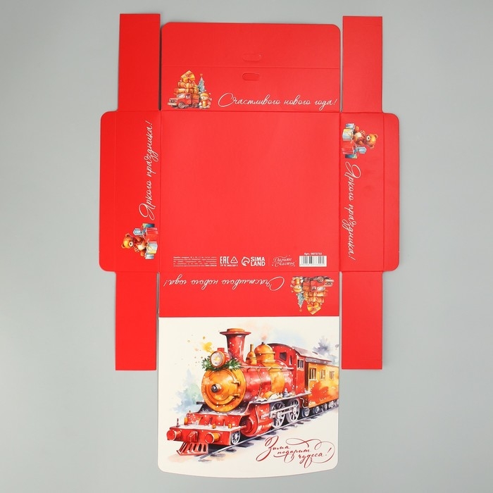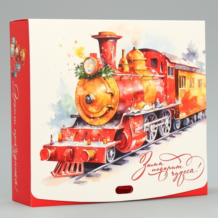 Коробка подарочная новогодняя складная «Новогодний поезд», 20 х 18 х 5 см, БЕЗ ЛЕНТЫ, Новый год