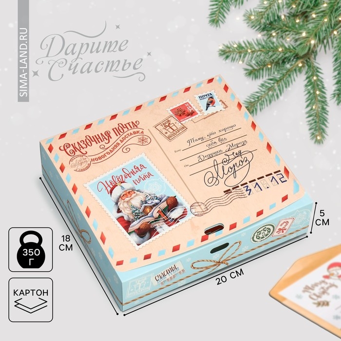 Коробка подарочная новогодняя складная «Сказочная почта», 20 х 18 х 5 см, БЕЗ ЛЕНТЫ, Новый год