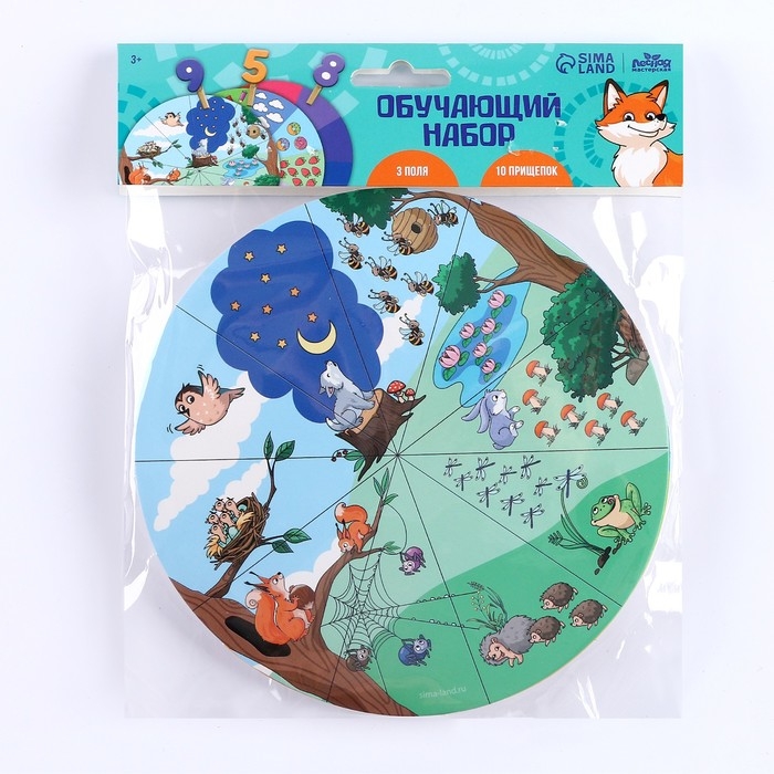 - В наборе вы найдёте 10 деталей на прищепках и 3 игровых поля.