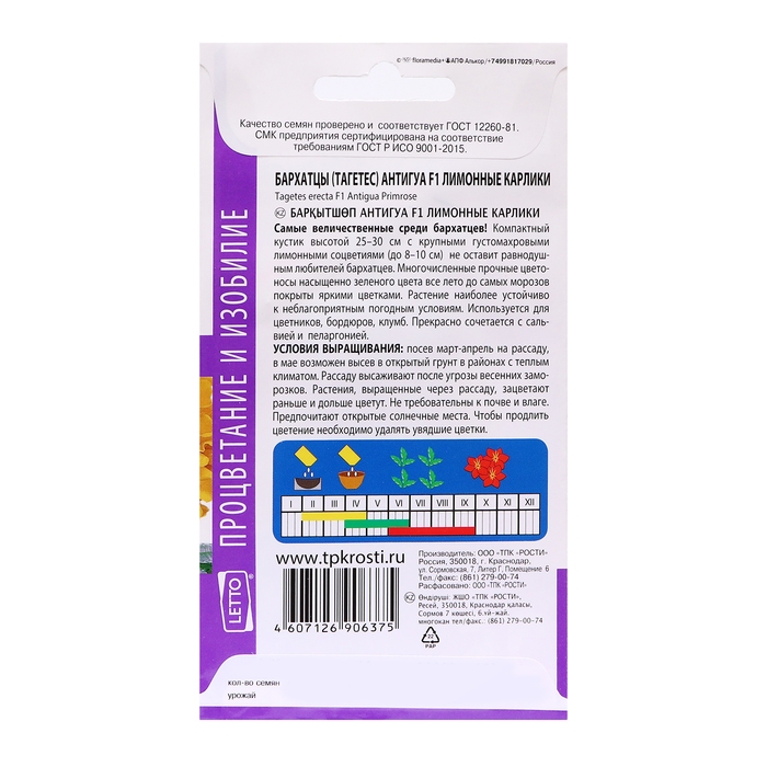 Семена цветов Бархатцы "Антигуа лимонные карлики F1", 7 шт