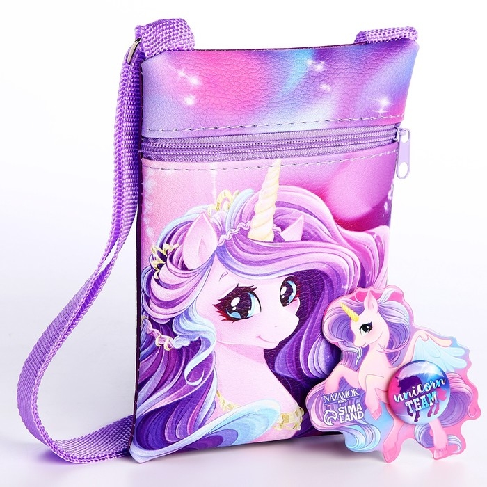 Подарочный набор для девочки Unicorn team, сумка, значок, цвет сиреневый