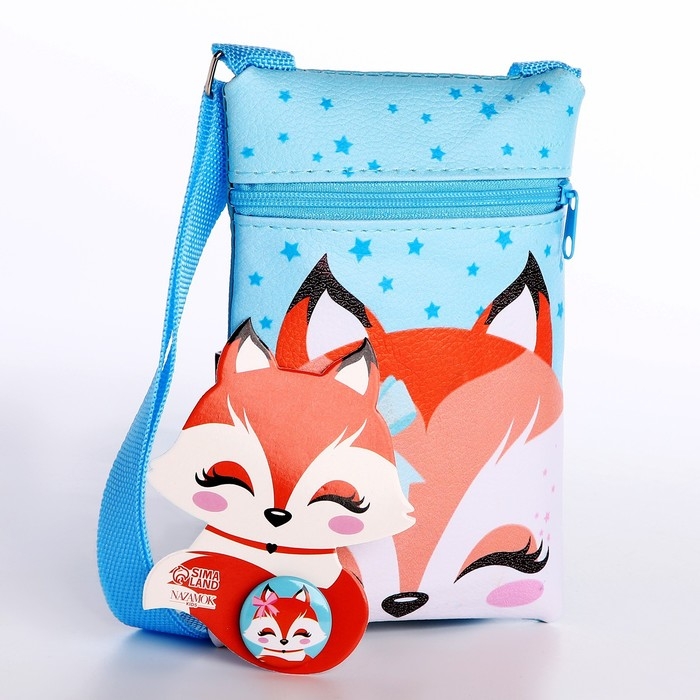 Подарочный набор для девочки «Добрая лисичка», сумка, значок, цвет голубой