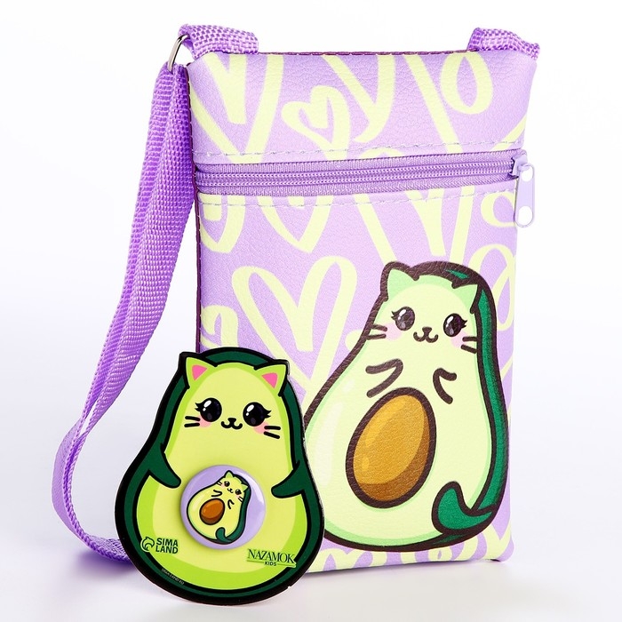 Подарочный набор для девочки AVOmeow, сумка + значок, цвет сиреневый