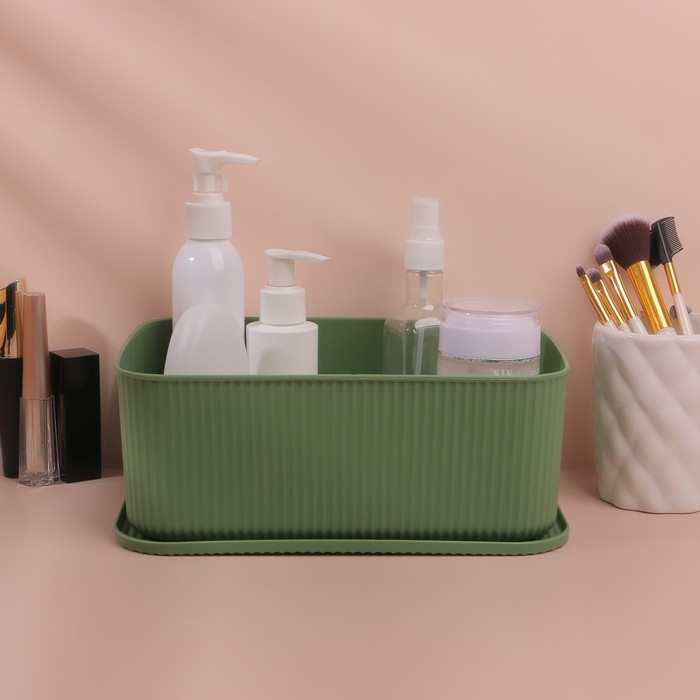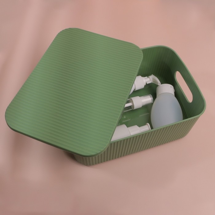 Органайзер для хранения косметических принадлежностей, с крышкой, 24 × 16,5 × 9,2 см, цвет МИКС
