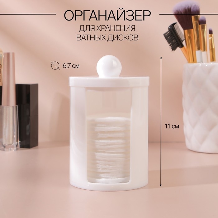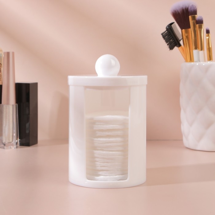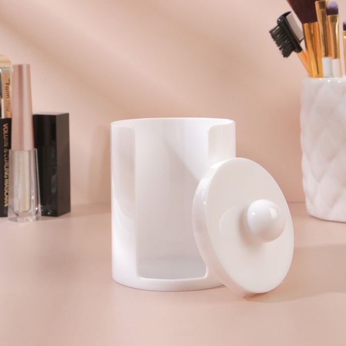 Органайзер для ватных дисков, с крышкой, d = 6,7 × 11 см, цвет белый