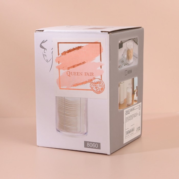 Стильный органайзер для ватных дисков поможет навести порядок среди гигиенических принадлежностей. Изделие отличается удобной боковой прорезью для извлечения дисков. Аксессуар способен вписаться в любой интерьер, сэкономив при этом место в шкафчиках или на вашей тумбочке.
