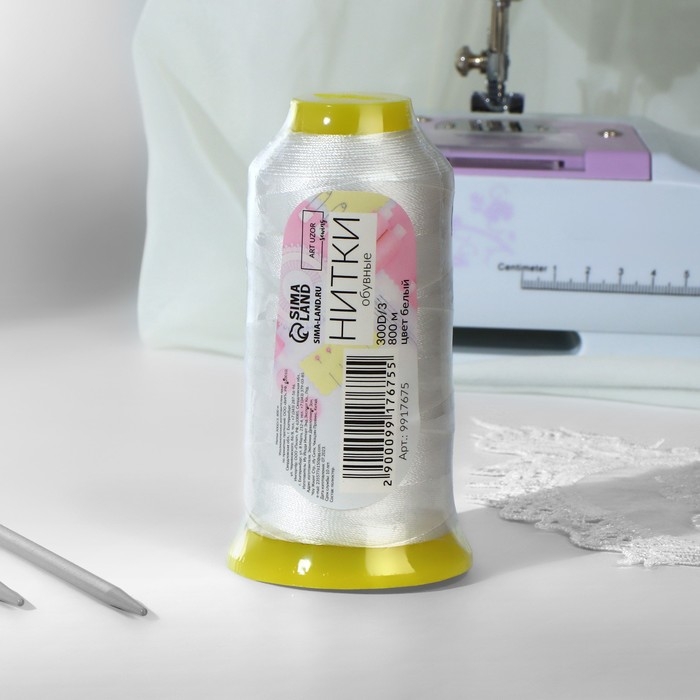 Нитки обувные, 300D/3, 800 м, цвет белый