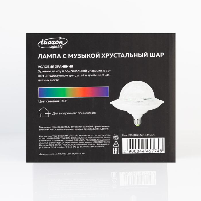 Световой прибор «Хрустальный шар» 19 см, Е27, динамик, пульт ДУ, свечение RGB