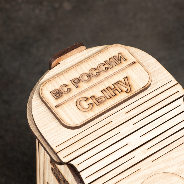 Шкатулка- берц "Сыну", бирка-пуля с пожеланиями, 16 х 13,5 х 8 см