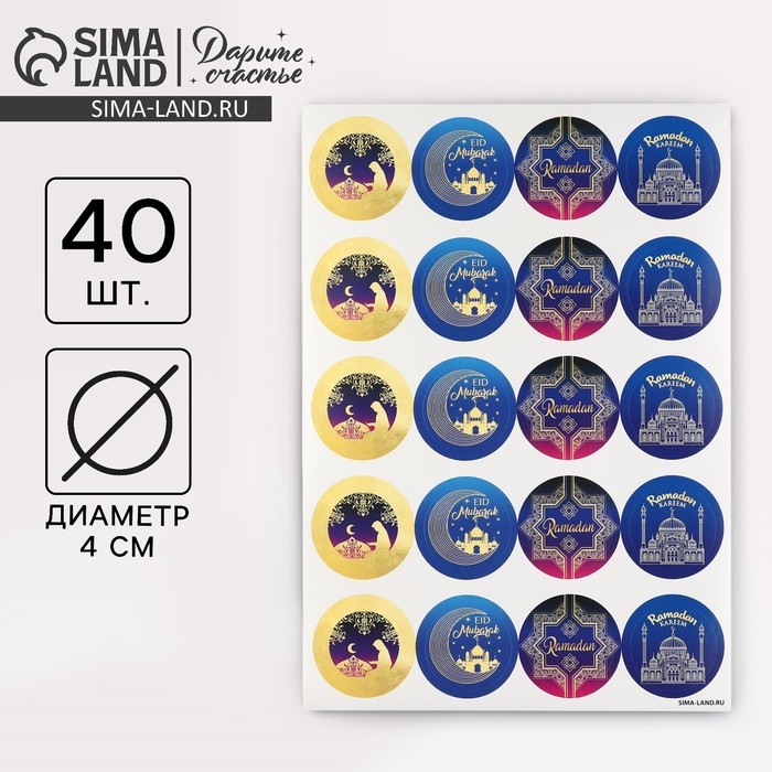 Наклейки для бизнеса и подарков «Светлый праздник Рамадан», 40 шт, 4 х 4 см
