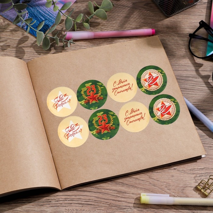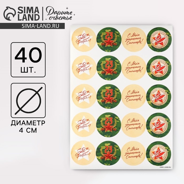 Наклейки для бизнеса и подарков «С 23 февраля», 40 шт, 4 х 4 см