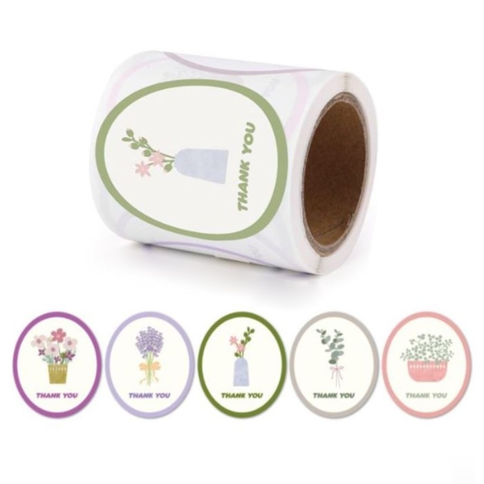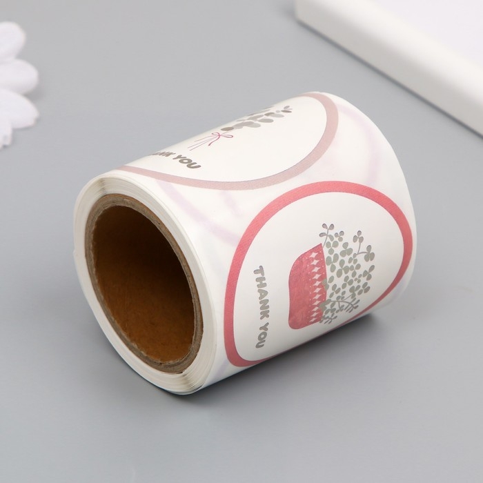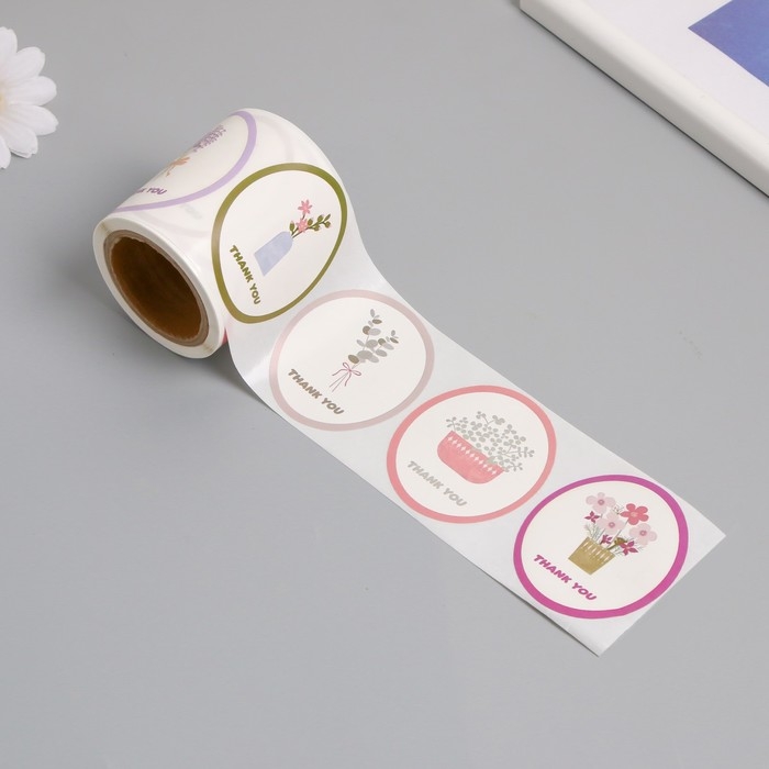 Наклейка бумага "Благодарность. Цветы в вазе" d=2,5 см 120 шт в рулоне 5,7х5,7х6 см