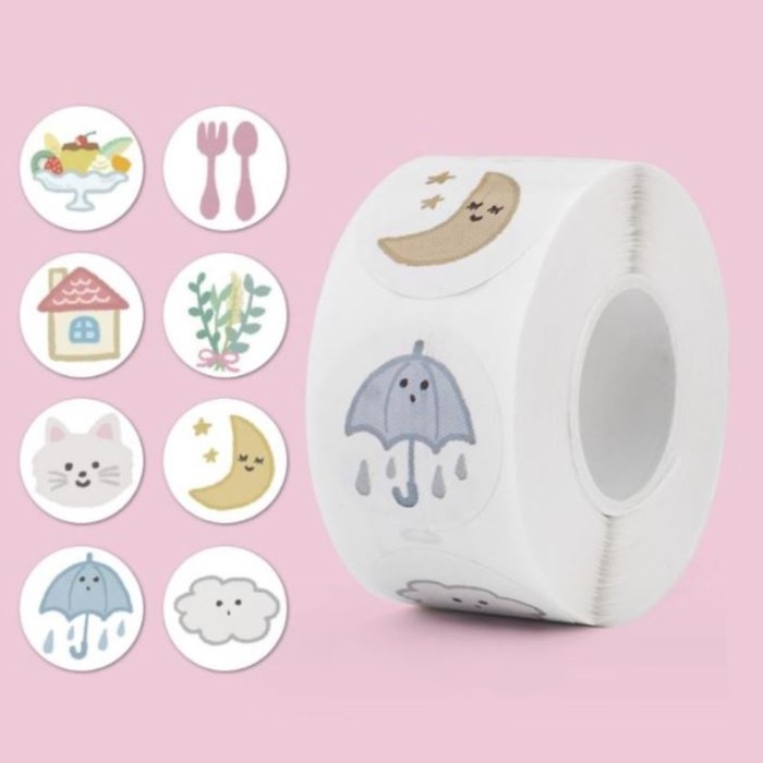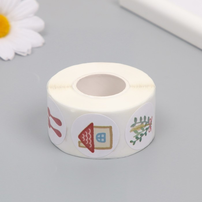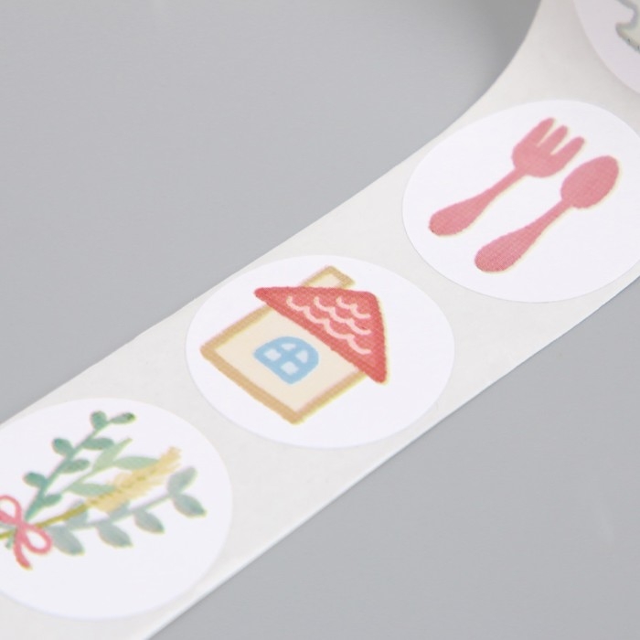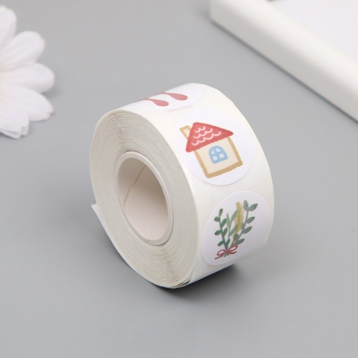 Наклейка бумага "Котик на даче" d=2,5 см 500 шт в рулоне 3х5,5х5,5 см
