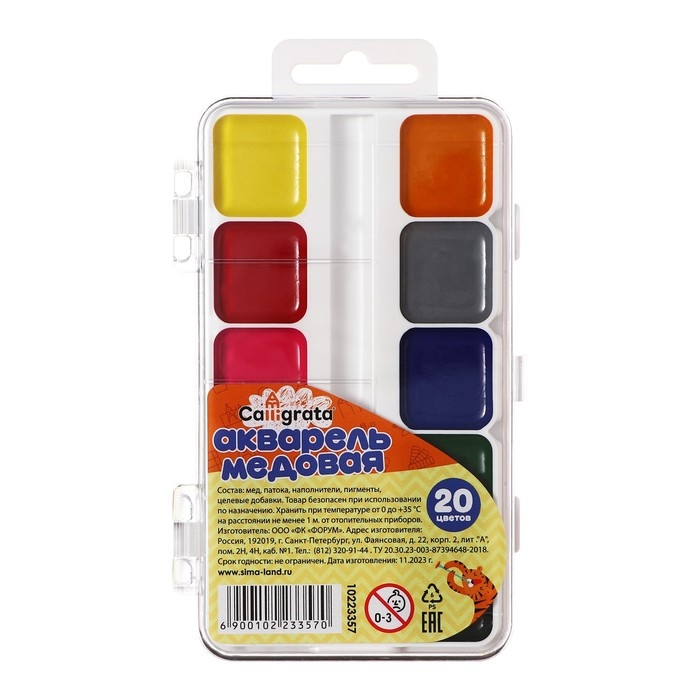 Акварель 20 цветов Calligrata, пластик, европодвеc