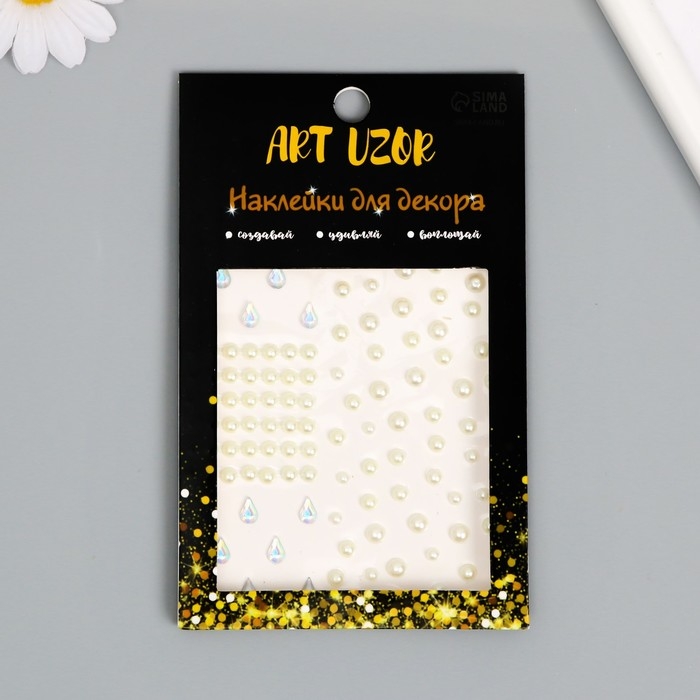 Наклейка пластик стразы "Жемчужины и капли" 12х10 см