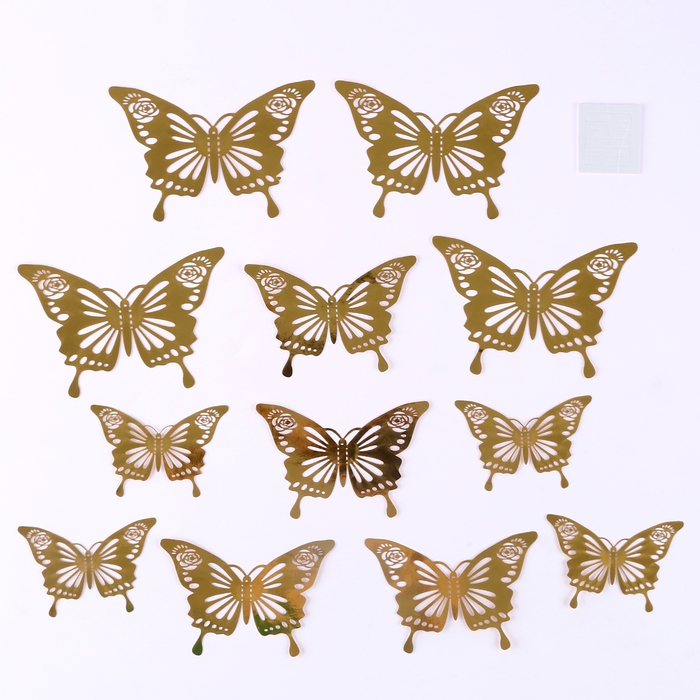В этот набор входят 12 золотистых бабочек, которые станут отличным выбором для декоративного оформления интерьеров и создания праздничной атмосферы. Бабочки лёгкие и прочные, поэтому их можно использовать для украшения стен, мебели и оформления мероприятий.