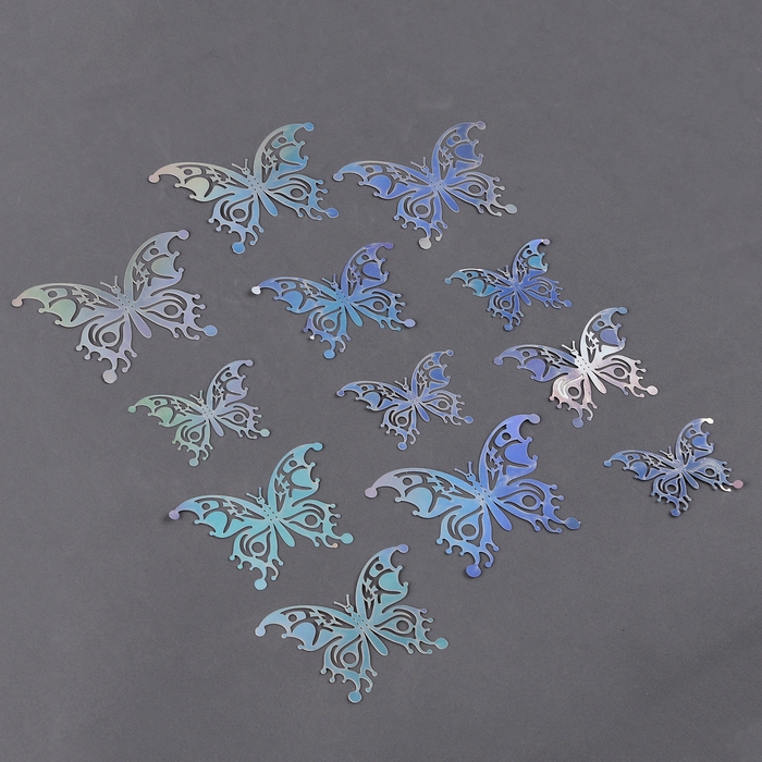 Набор топперов «Бабочки», набор — 12 шт., цвет голография серебро