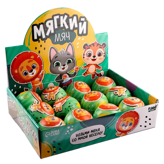Мяч детский мягкий «Лови, бросай», зверята 7,6см , в шоубоксе